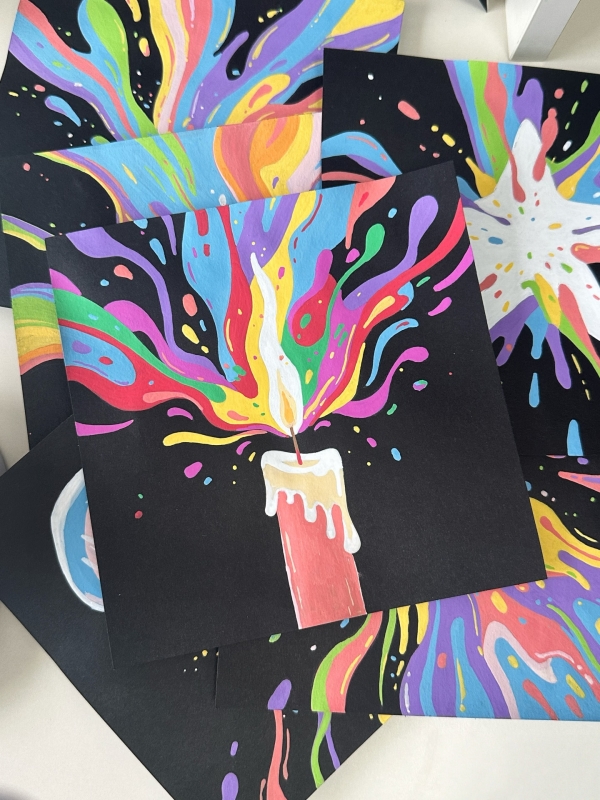- Художественное творчество: Черный картон большого формата 4K и 8K является незаменимым материалом для студентов художественных специальностей. Совместим с маркерами, золотыми ручками, цветными карандашами и т.д., темный фон значительно повышает цветопередачу, что делает его идеальным для набросков, ручного рисования для демонстрации, дизайнерского макетирования и объемных поделок. Черный картон 250–300 г/м² подходит для вырезания, оригами и pop-up книг, в то время как продукты с высокой плотностью 500 г/м² служат основой для моделей, поддерживая сложные трехмерные структуры.
